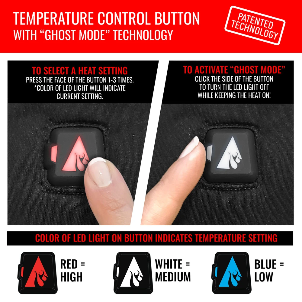 The heating elements are perfectly positioned along your fingers and thumbs, as well as the mitten flip top so the heat circulates throughout your entire hand for complete warmth. Slim batteries fit into a discreet pocket on the extended gauntlet for a comfortable fit.