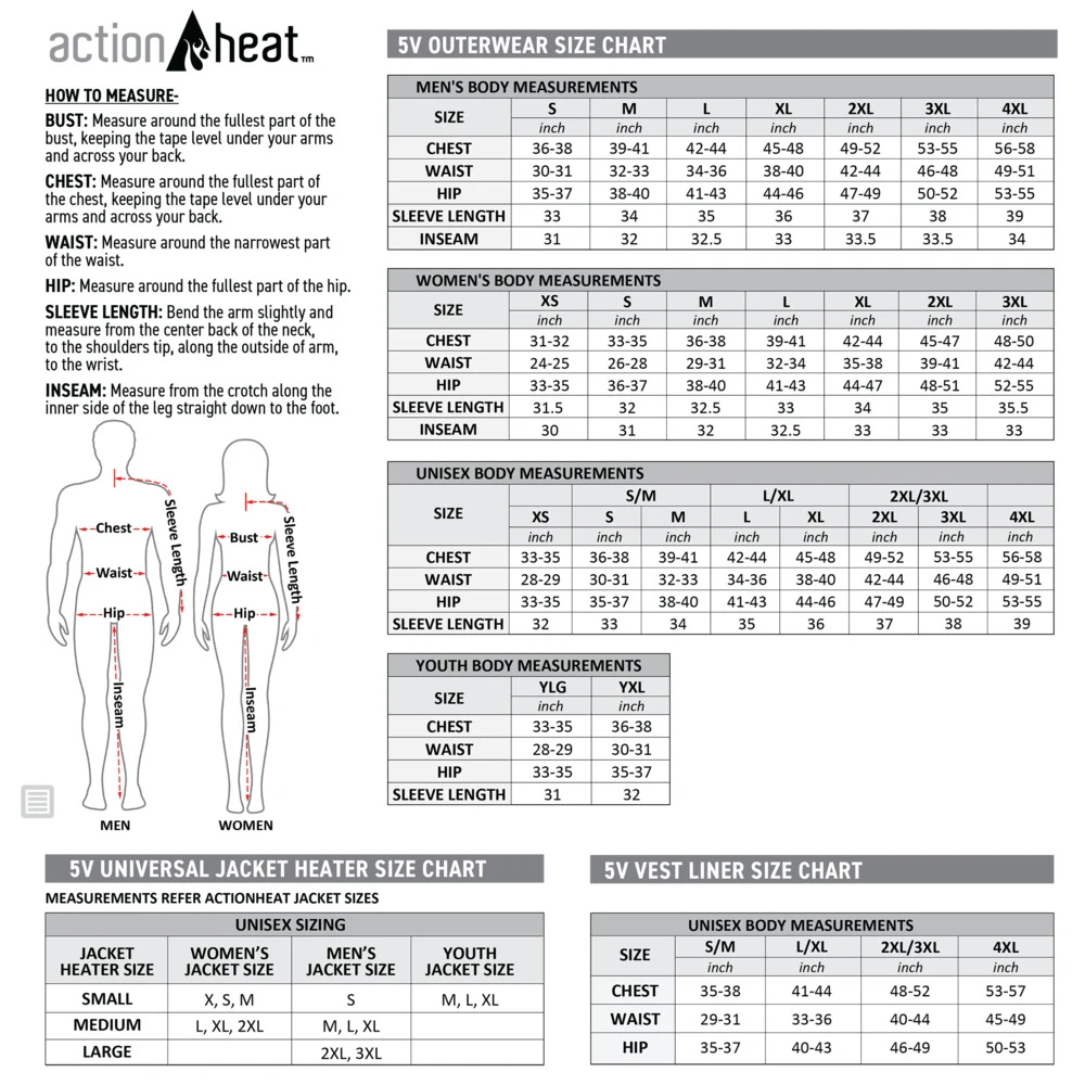 ActionHeat heated garments use FAR infrared heating and ActionWave heat reflective technology to deliver hours of heat and comfort. ActionHeat allows you to stay warm and enjoy outdoor winter activities longer than ever before.