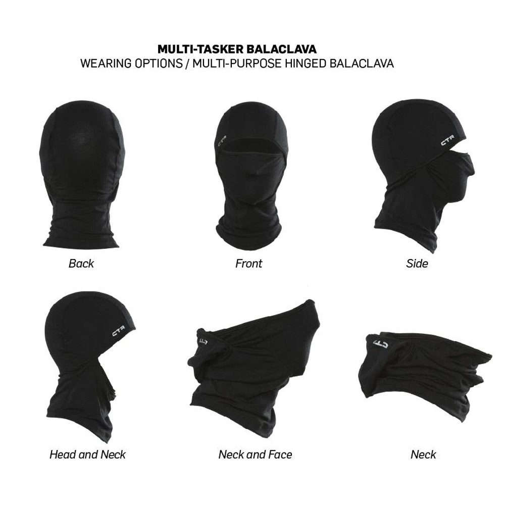 Keep your head and face warm this winter with the Mistral Multi-Tasker Balaclava. This Pro-Stretch Plus multi-functional hinged balaclava is perfect for layering under a helmet or to just wear it alone! With the lycra binding around the face, it seals out the elements. Featuring flat lock seams and 3D panel construction, the shaped bottom helps provide extended protection without being bulky.Features:Content:92% Polyester/ 8% ElastaneColor:BlackReflective logo detail for improved visibilitySuperior wicking abilities to remove moisture from skin