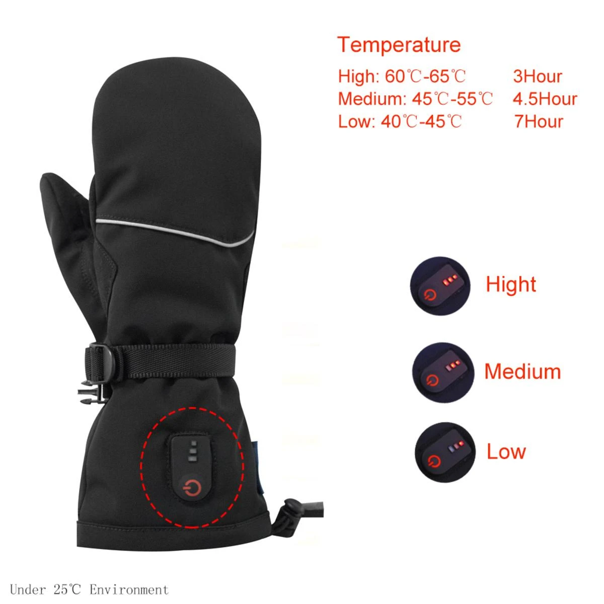 Also, the heated gloves have 3 heat settings – low heat, medium heat, high heat – so that you can choose your right temperature and stay comfortable according to different environments.