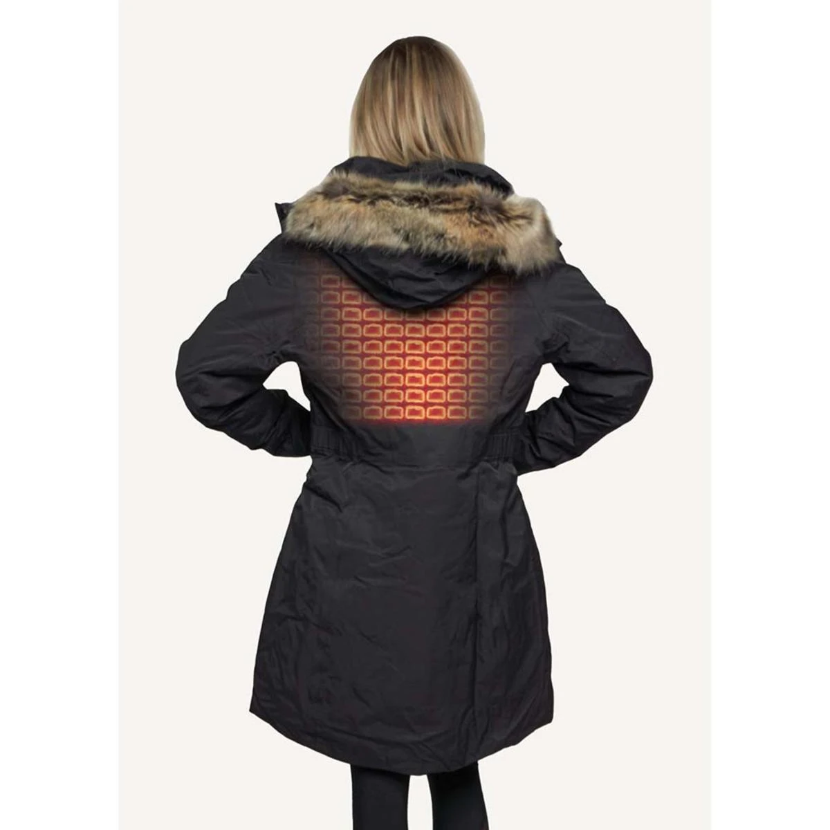The all-new women’s heated parka coat is so amazing it needs to be seen to be believed. Combining a next-gen DWR water-resistant and windproof shell fabric and carbon fiber heating elements to generate and trap heat across core body areas creates truly one of the most technically advanced coats available.