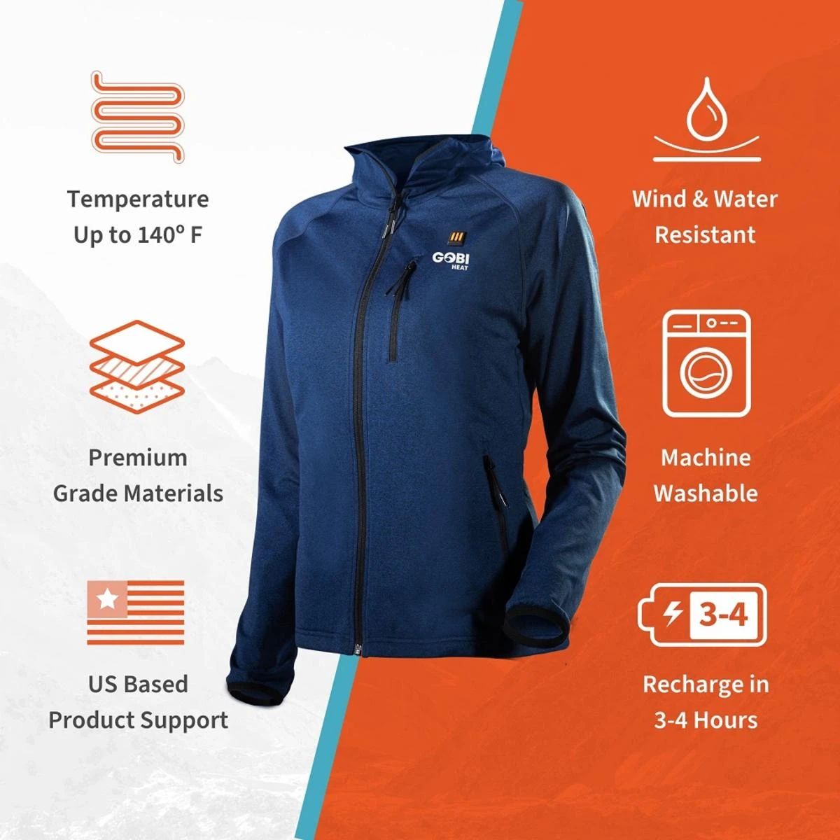 The Apex Heated Tech Hoodie is Gobi Heat’s trendiest heated jacket yet. Featuring a full-zip design and a flexible, lightweight fabric, the Apex tech hoodie brings you warmth wherever your day takes you. This heated lightweight hoodie is battery powered and contains our premium and efficient conductive thread heat system. Featuring three customizable levels of heat, you take control of your comfort and set the jacket to the heat setting you desire. We are excited to offer our premium heated jacket in two colors, Coal Black and Ocean Blue. Stay dry, warm and comfortable without the restraints of a stiffer fitting jacket.