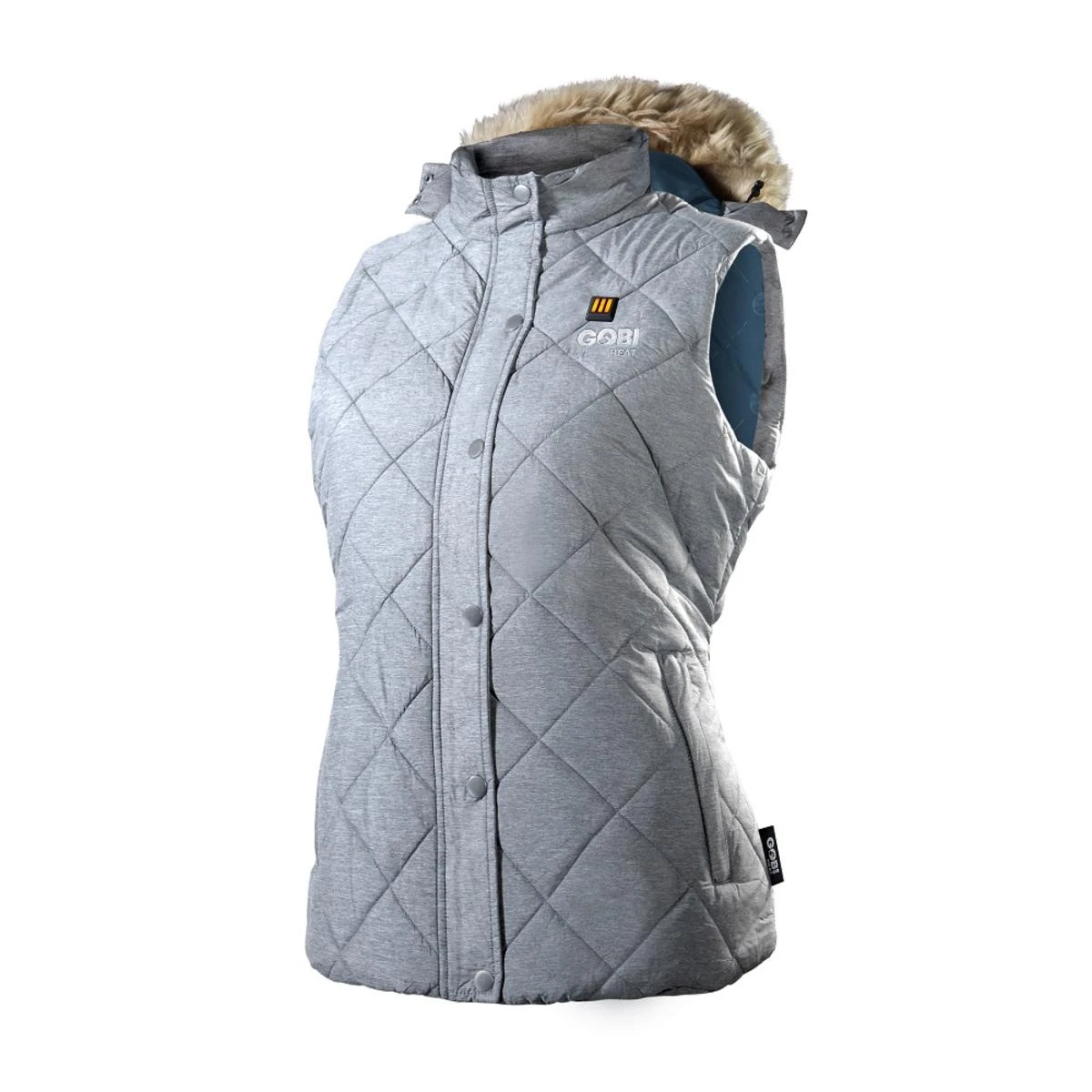 The Cirrus Heated Winter Vest is Gobi Heat’s newest premium option in our growing line of vests. The quality starts from the outside in, featuring a quilted melange outer shell available in two colors Stone Grey and Cloud Grey. This vest features a removable faux fur hood that sets this vest apart from any of our other options. The Cirrus vest provides you with a fully flexible hood option that you can use in wet environments or remove for a warmer day. Each Cirrus Heated Vest is equipped with Gobi Heat’s premier conductive thread heat system, providing customizable warmth to all areas of your body. Our efficient battery heated vest is sure to keep you warm and looking great this winter.
