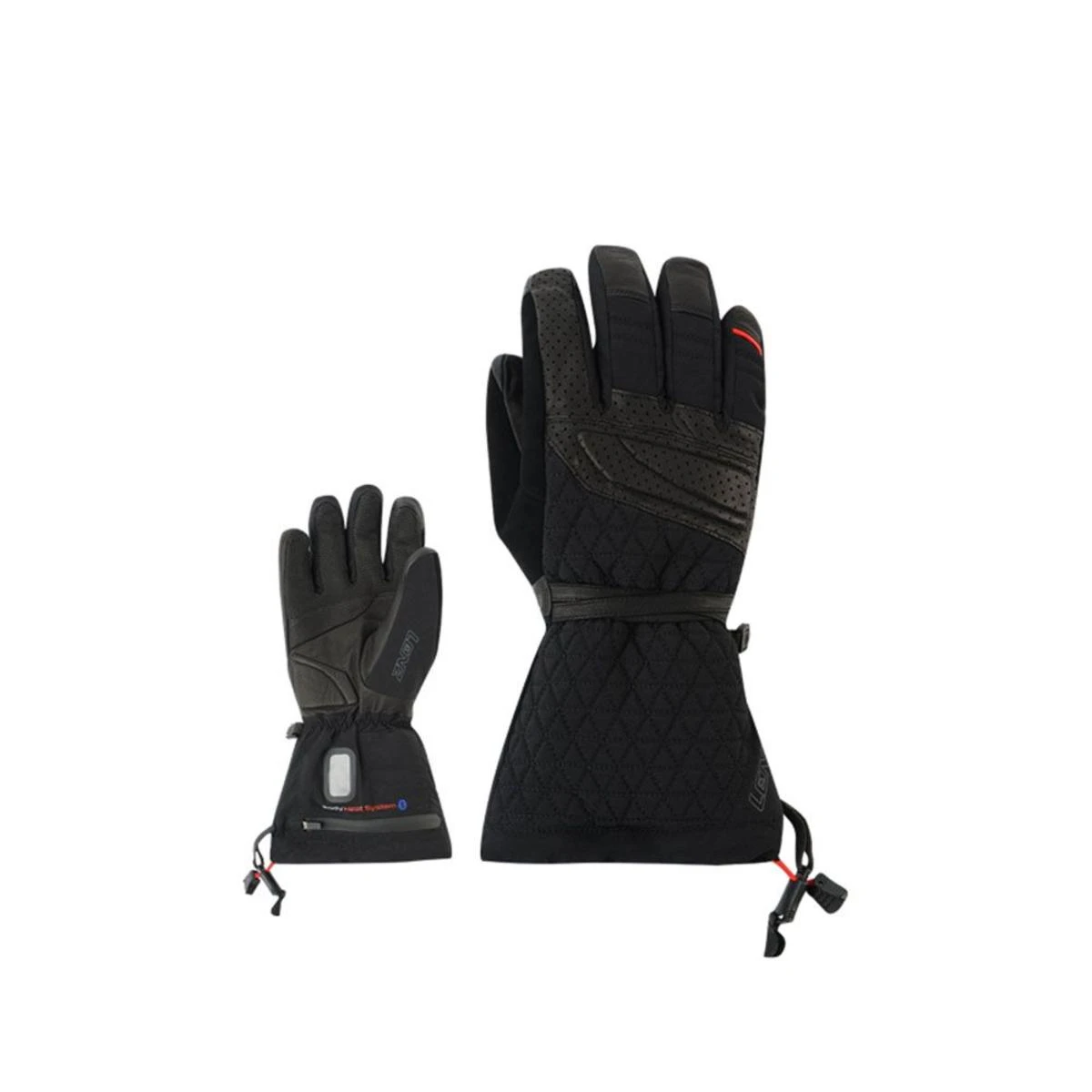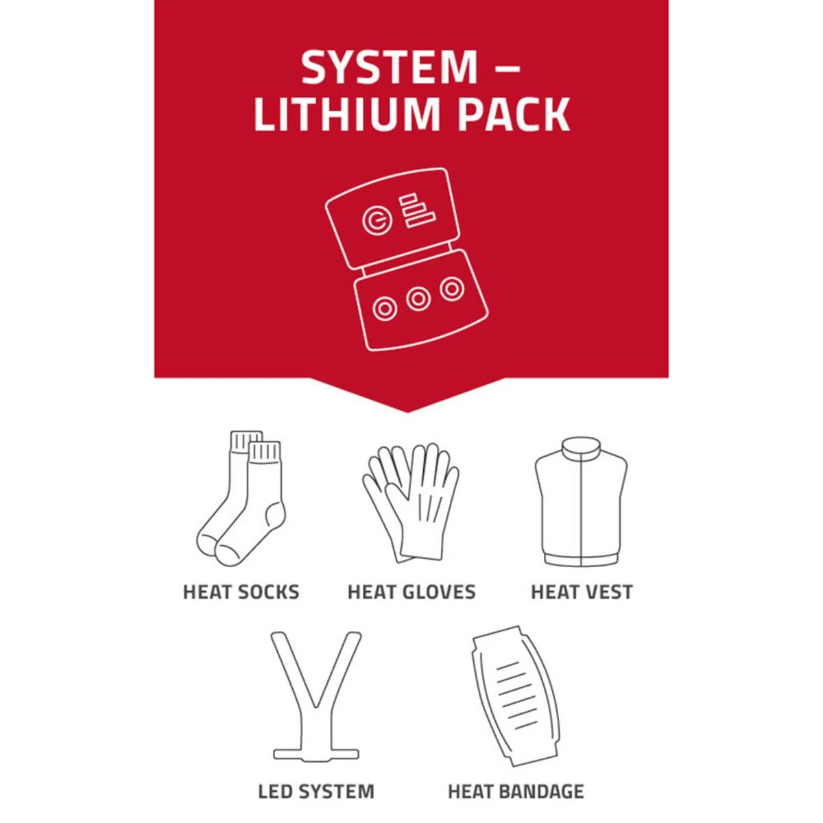 - Lithium packs can be connected to the heat glove using the push buttons