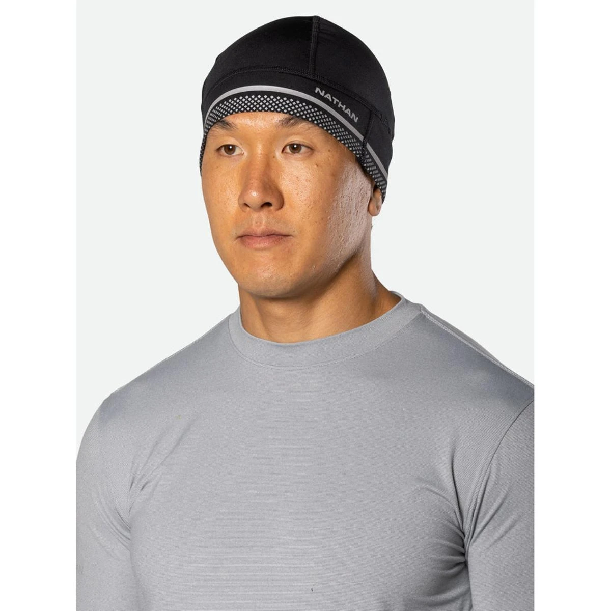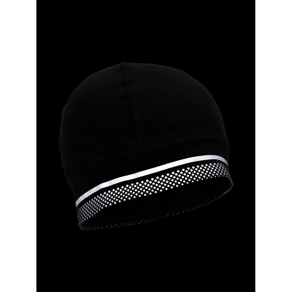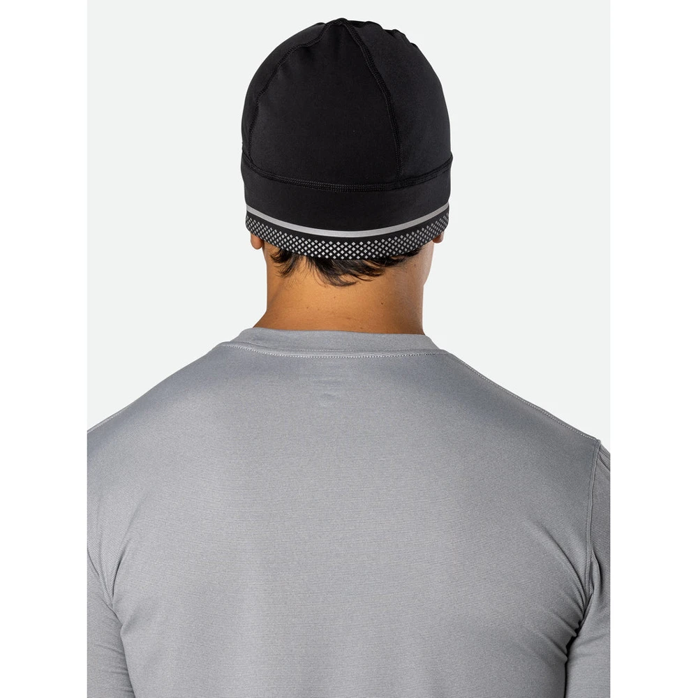 Need to keep your head warm on those cool weather runs that transition from day to night? Our lightweight stretch beanie showcases an all over reflective graphic detailing that gives you additional reflective flair for any transitional day to night run.