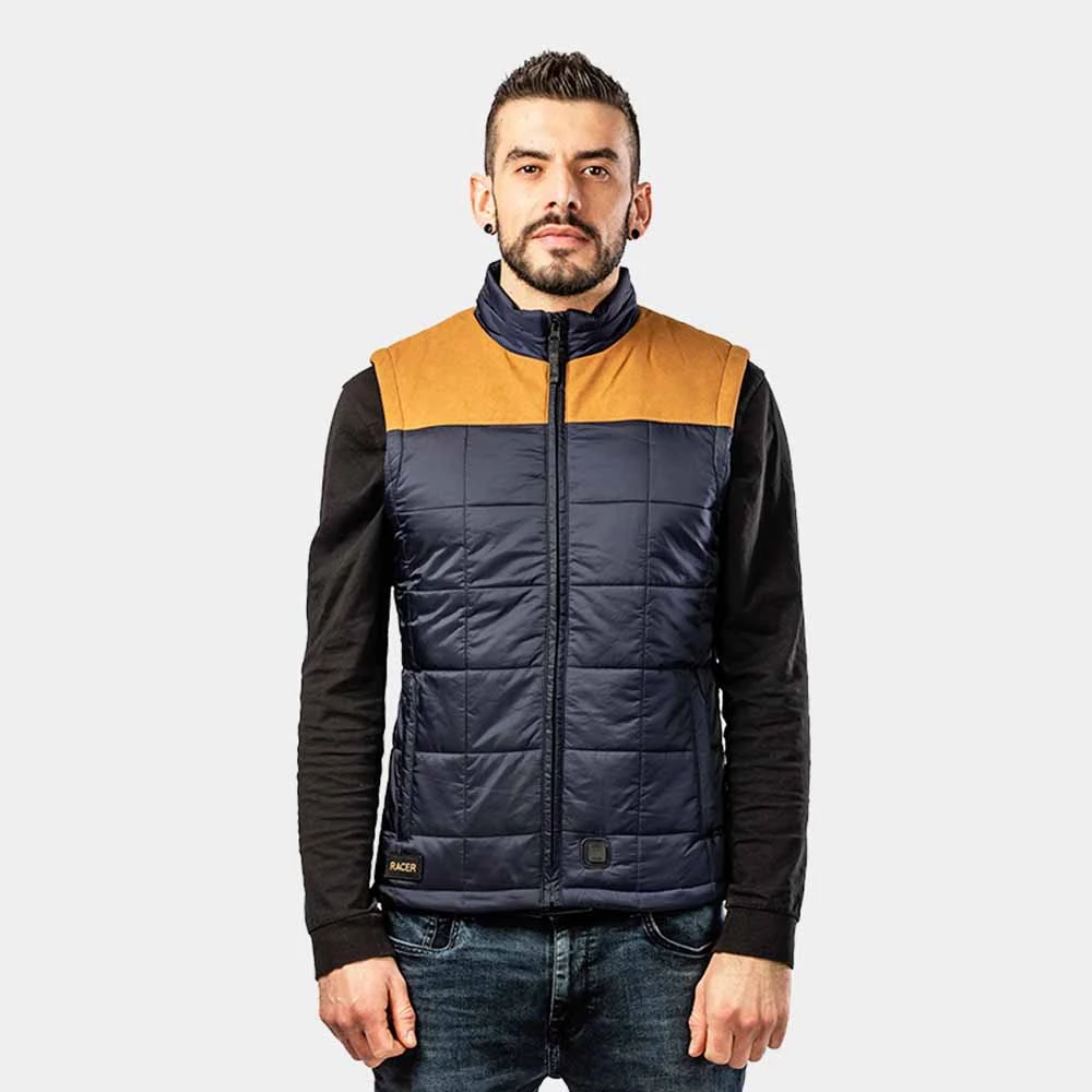 This Power Bank of 13.5cm x 7cm can be easily stored in the pocket of the vest to take it everywhere with you. The District Men vest can be used with any other power bank on the market, however it must deliver enough power (output: 5V – 3A)