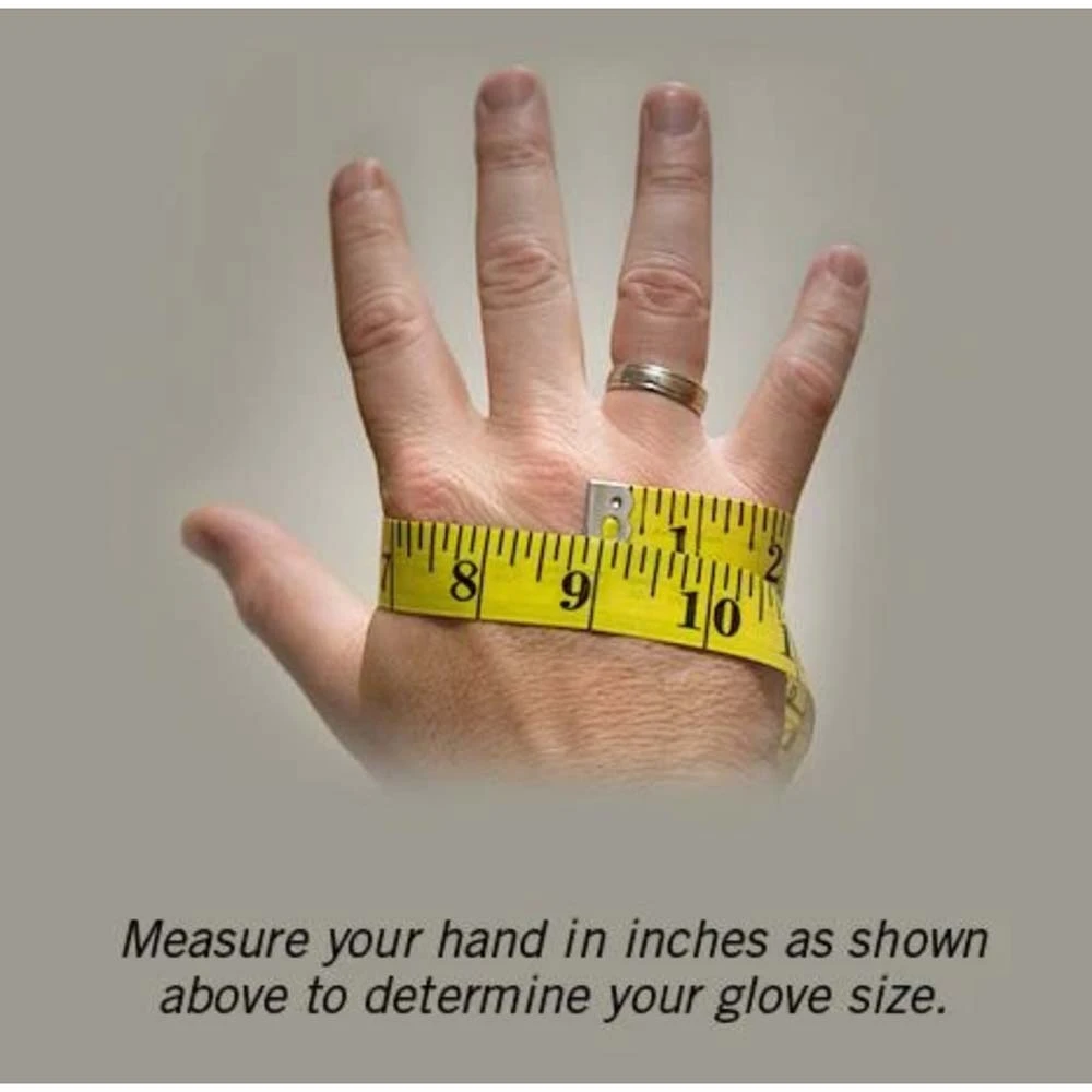 - Large: Hand circumference 8.5 – 9″, Middle finger length 3.3 – 3.5″
