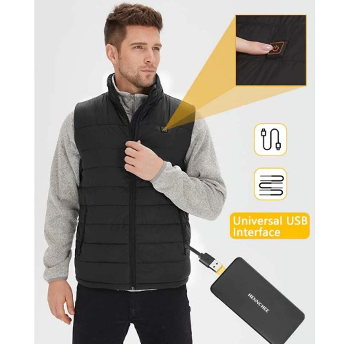 Heated Vest is made of high-quality fabric and heated carbon fiber. It has a built-in thermal protection module. In the event of overheating, it will stop heating until the heat returns to standard temperature, giving you peace of mind.